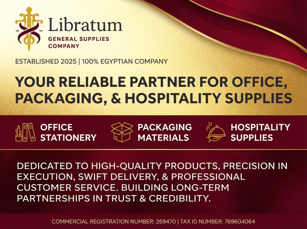 Libratum General Supplies is a Limited Liability Company (LLC) established in 2025. As a 100% Egyptian company, we specialize in supplying office stationery, packaging materials, and hospitality supplies to individuals, businesses, and institutions.